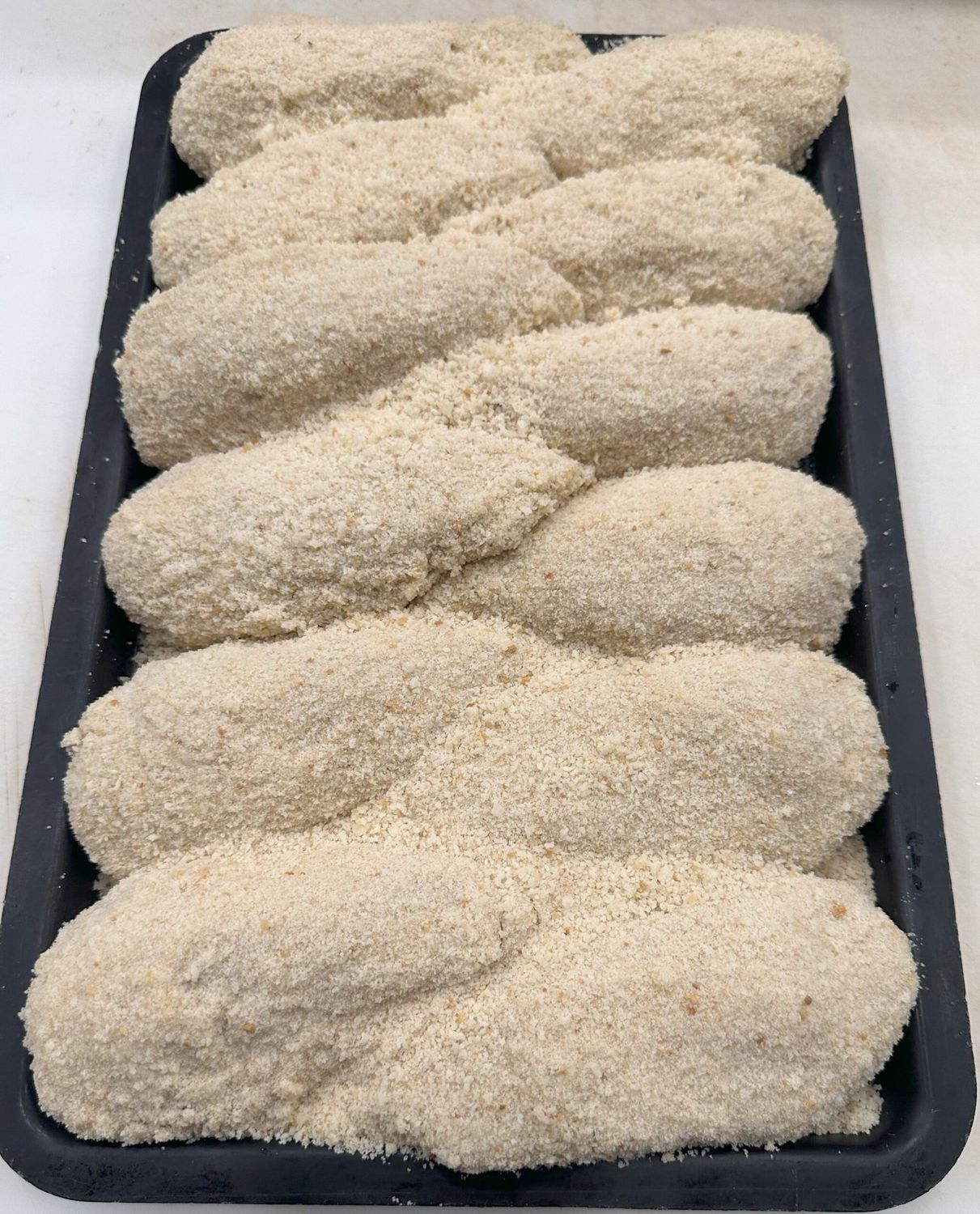 Crumbed chicken filled with garlic butter—crispy on the outside, rich inside.
